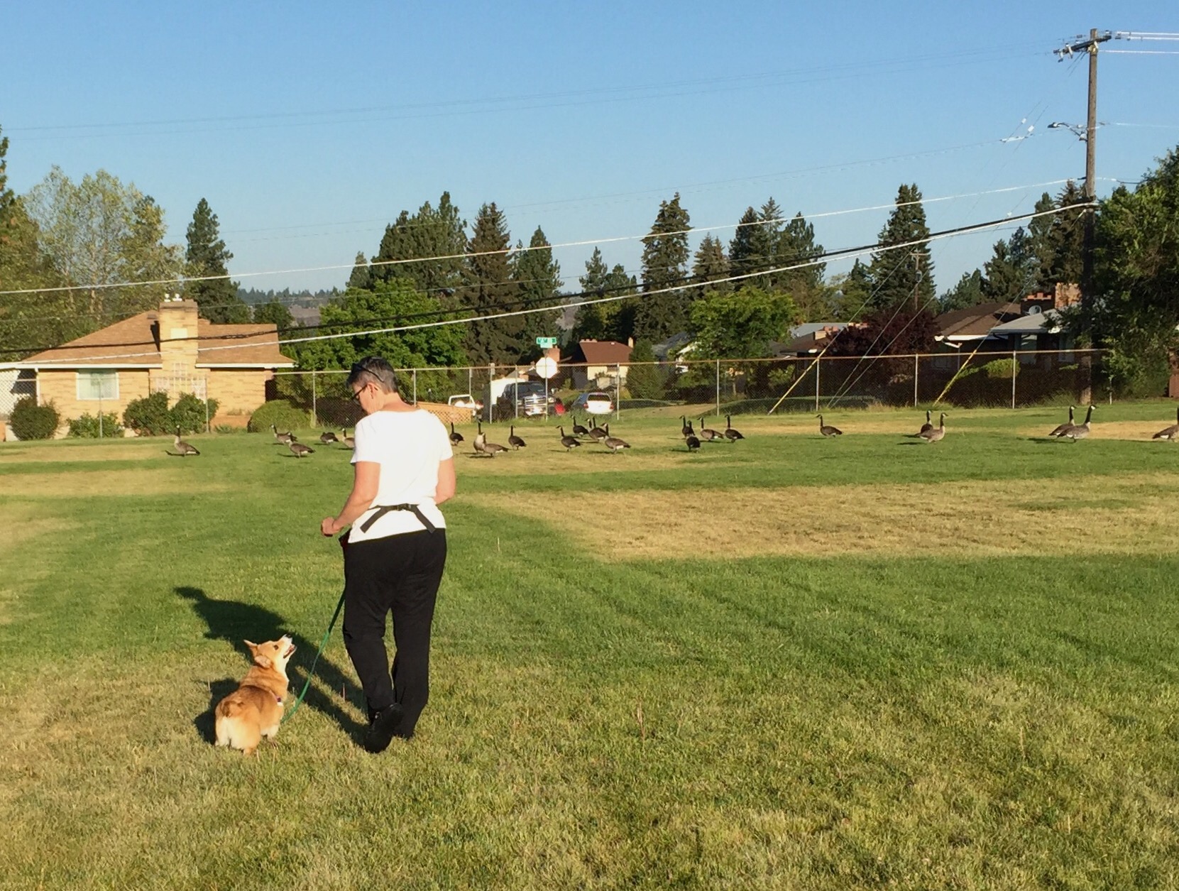Thursday morning this is what we encountered on our 6:30am stroll … GREAT opportunity to work on distractions and attention!