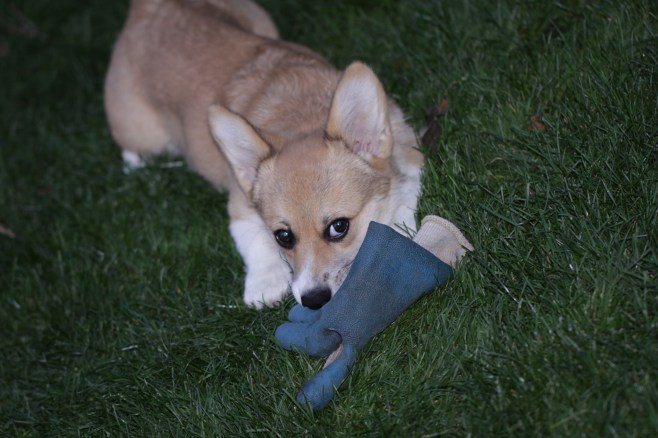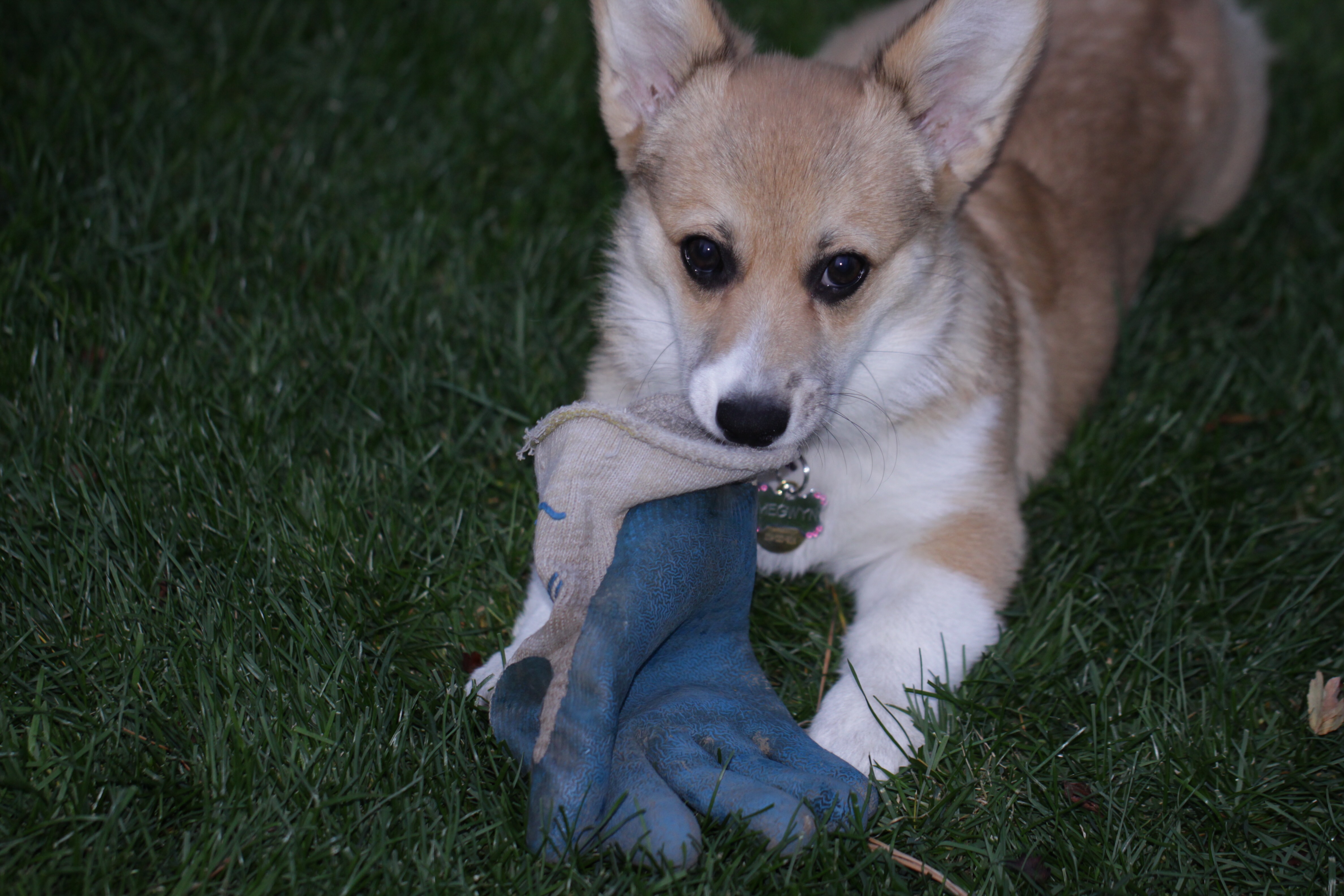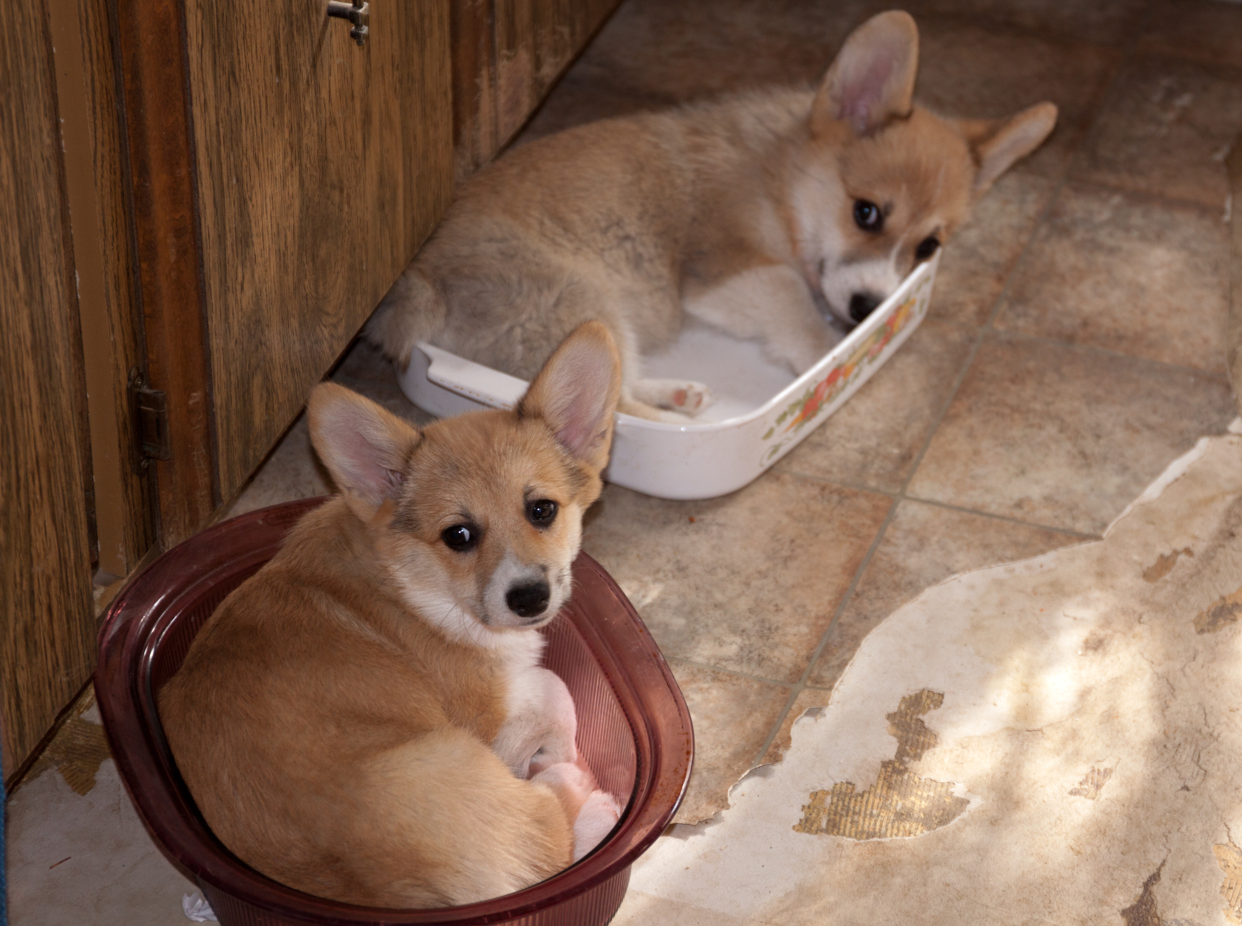 Greetings Corgi fans. Sorry to be remiss in keeping all updated on the Cain Corgi chaos. I had big plans to blog about Megwyn, aka Baby Bug, weekly to document her growth and development. As it turns out, we have been so busy just playing, training and socializing her, I have not had a single minute to write about her. I really don’t have that minute now but that is why God made Pizza Hut, right?