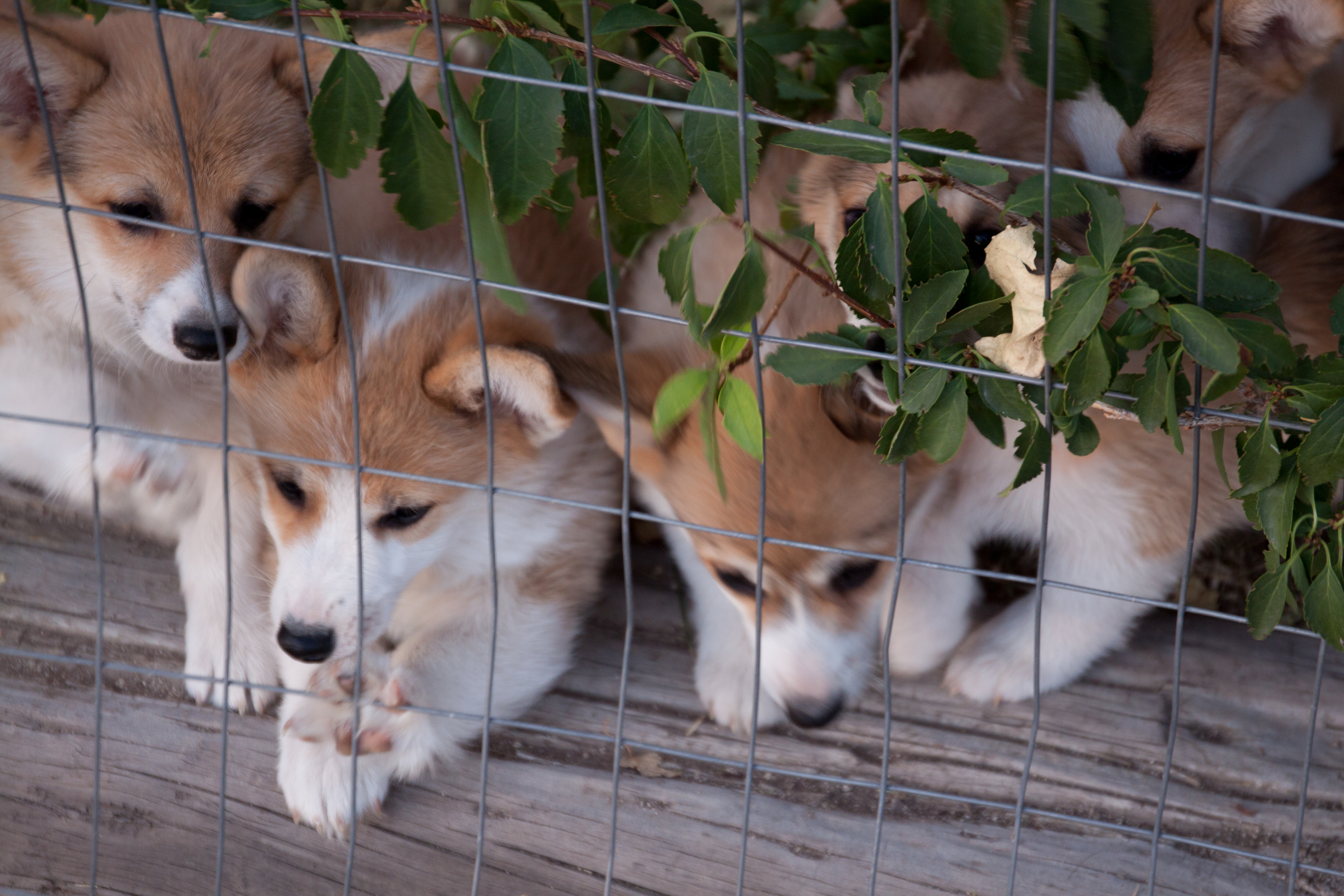 Sunday morning, we got up, packed up and headed back to Nan’s to pick up our baby – and another baby coming to live in Coeur d’Alene. When we arrived, the 2 babies destined for a long car ride were in the puppy yard. Baby Bug and Lil Mollie. We left Nan’s about noon and headed for home. Boise to Baker City to Pendleton to Hermiston to the Tri Cities to Spokane. Got into Spokane about 8. We stopped at Mike’s parents unannounced and rang the doorbell, each of us holding a puppy. There was much squealing with delight at the sight of two tiny corgi pups. We then headed to our house where Haley and Jesse were coming to pick up their girl. We had a great but short visit with them and they headed for home. And we were alone with our new pack. Everyone was exhausted and so we just headed to bed.