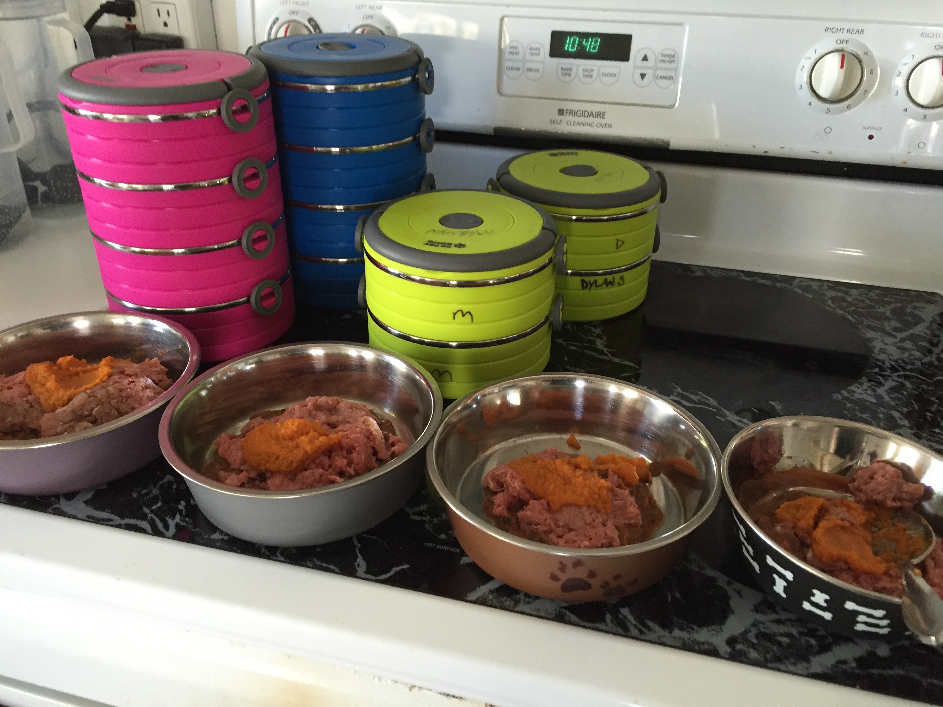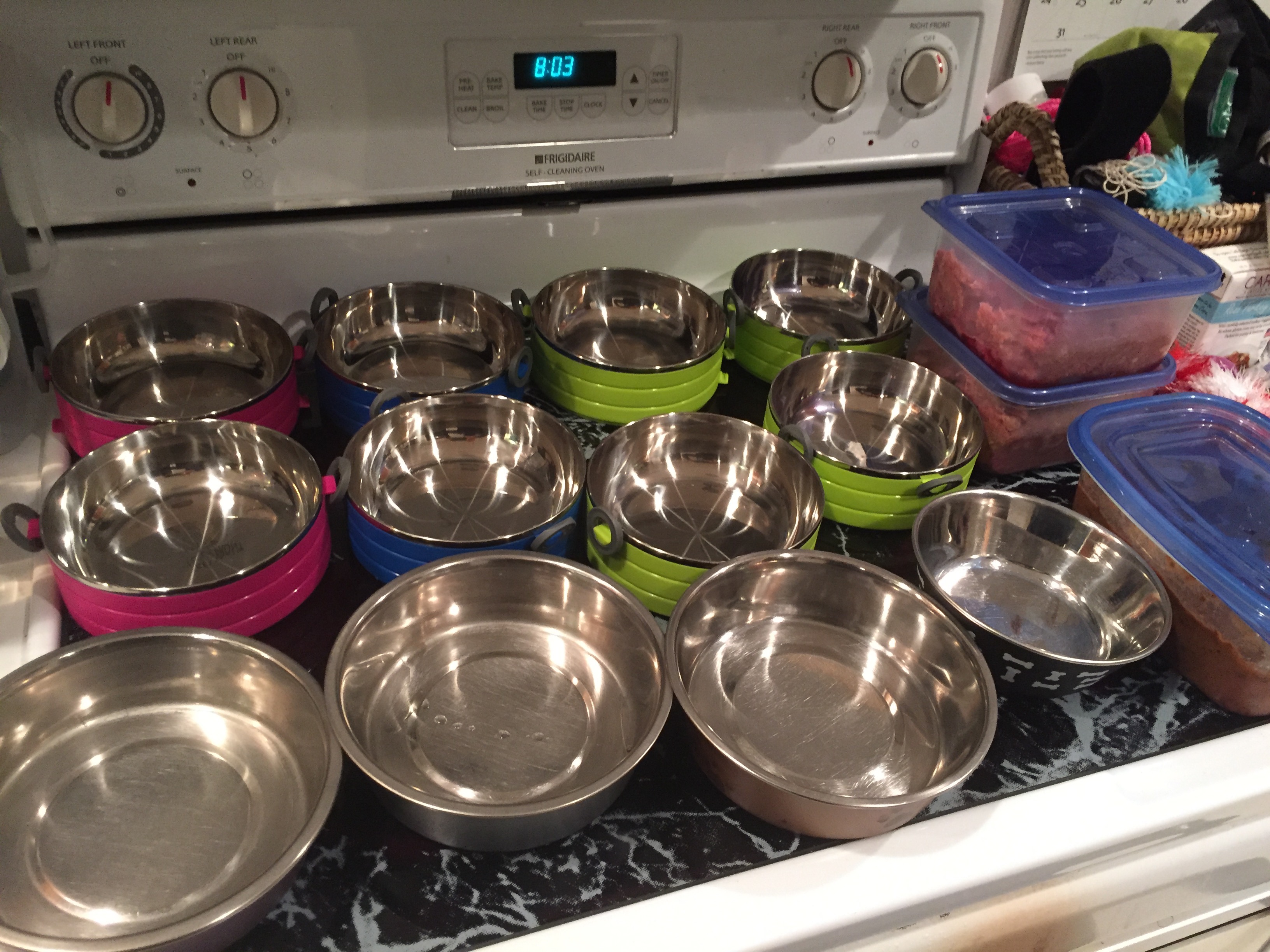 This is just a minuscule view of what food prep around here looks like! Found some great stackable bowls that let me make meals 2-3 ahead. Woo hoo!!!!