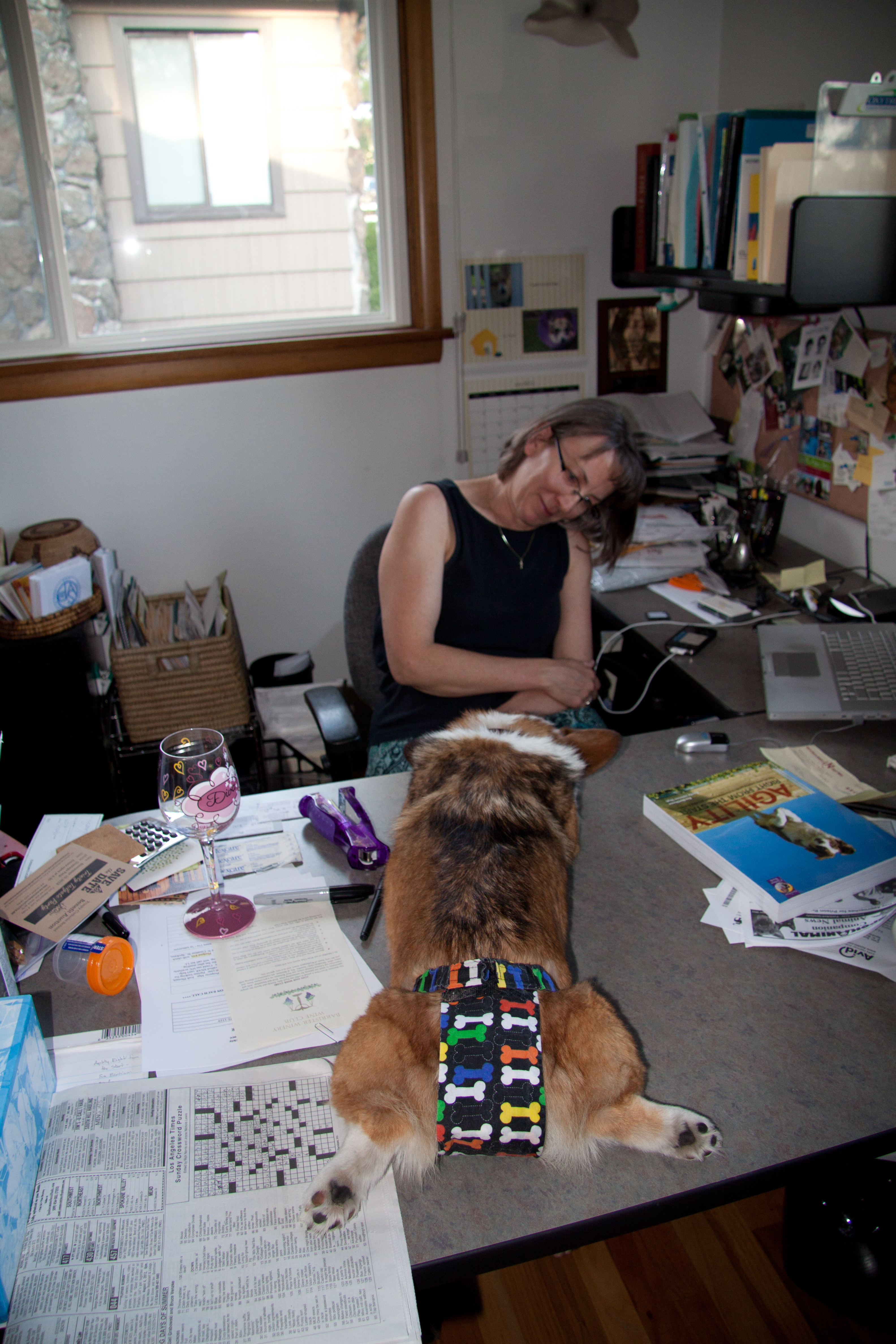 She is having trouble controlling her urine so is back in her monkey trunks. Which is no big deal for either of us (Maddie or Mike/me). This is likely due to the elevated calcium levels in her blood. Will add some pics of our little fashion plate to show you how gorgeous she is in her bikini bottoms.